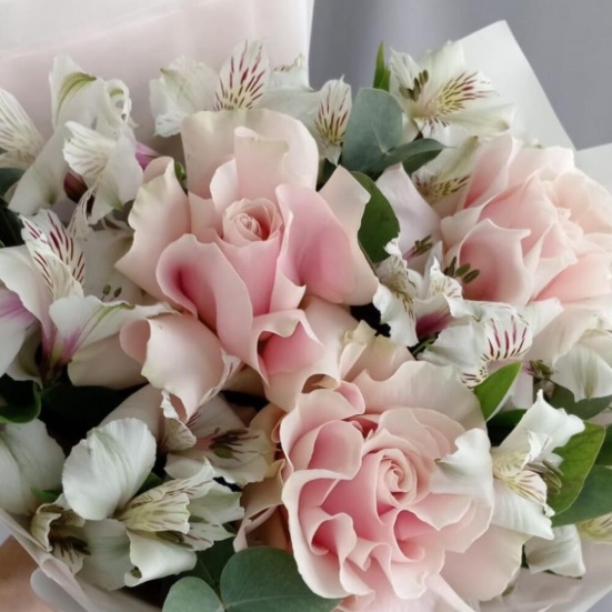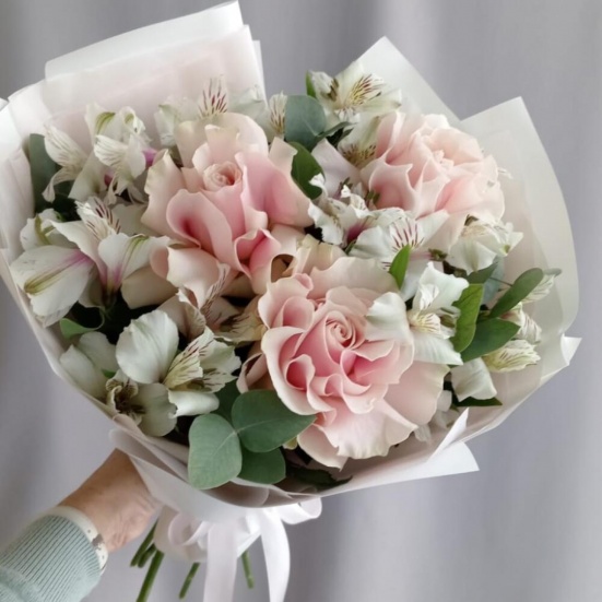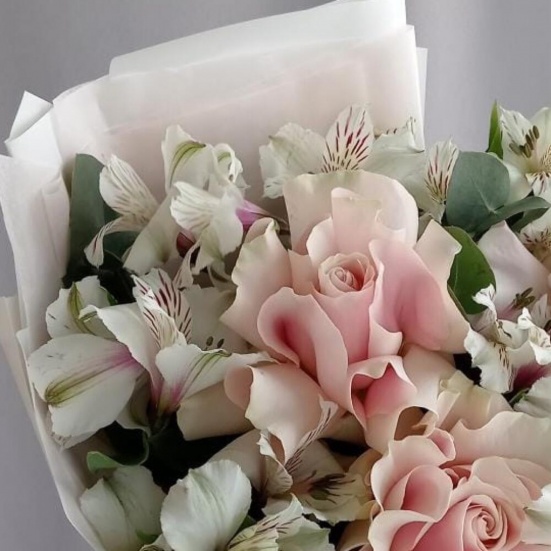 Букет из 3 французских роз и Альстромерии в Балабаново