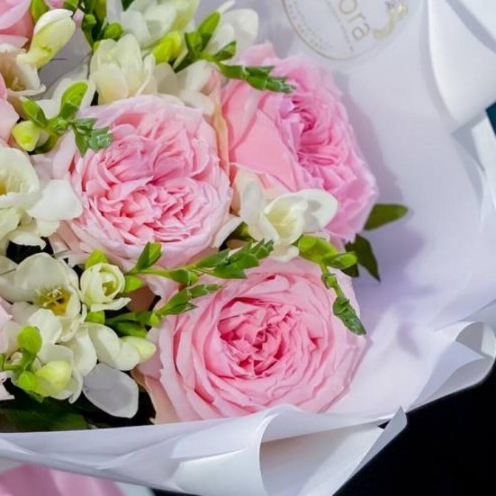 Букет из фрезий и пионовидных роз
