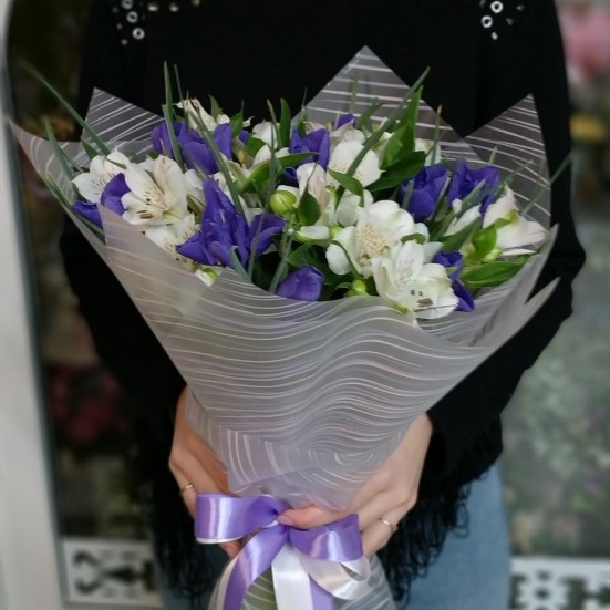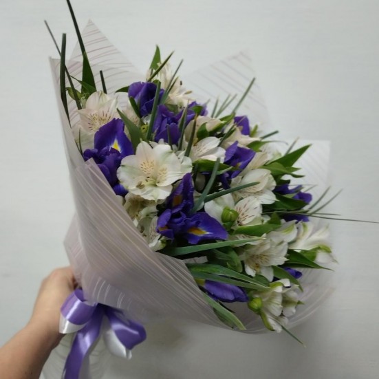 Букет из ирисов и альстромерий