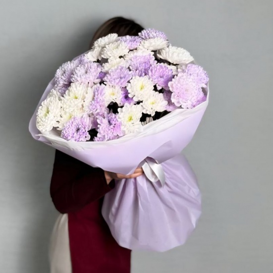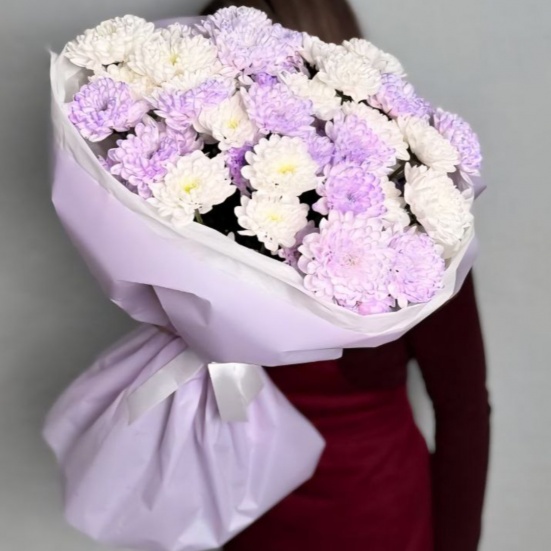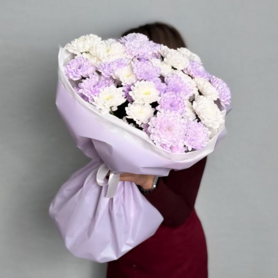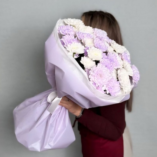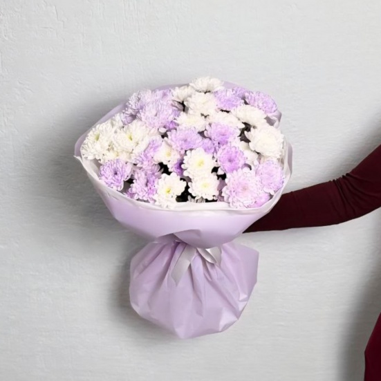 Букет из 9 фиолетовых и белых хризантем в Балабаново