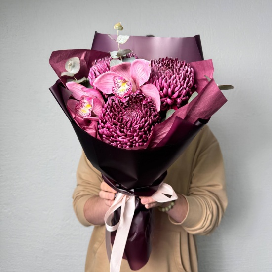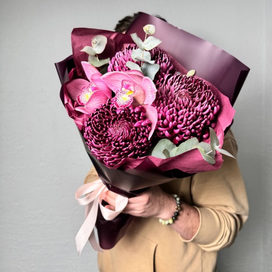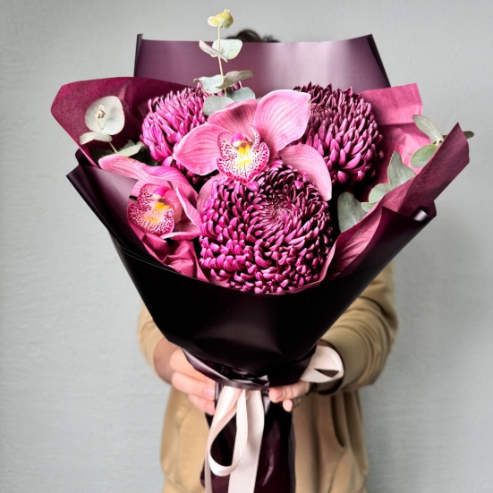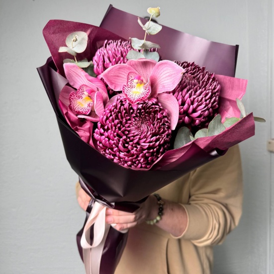 Букет из хризантем Бигуди и Орхидей в Балабаново