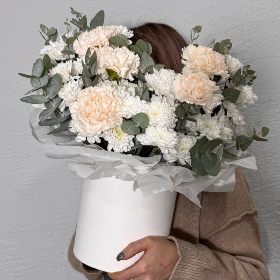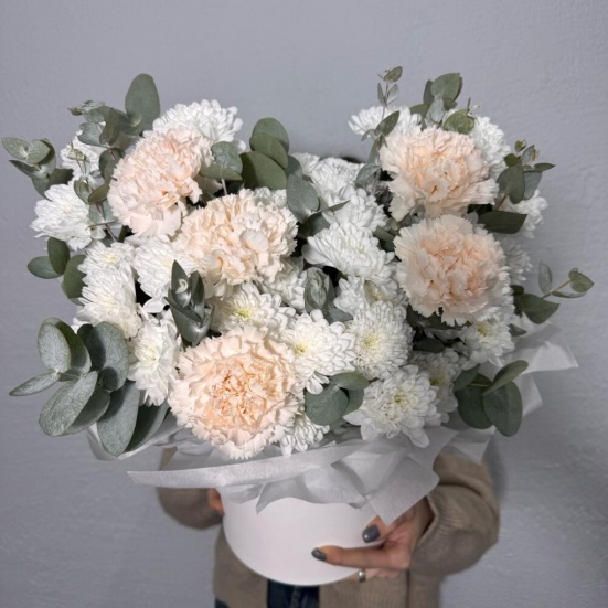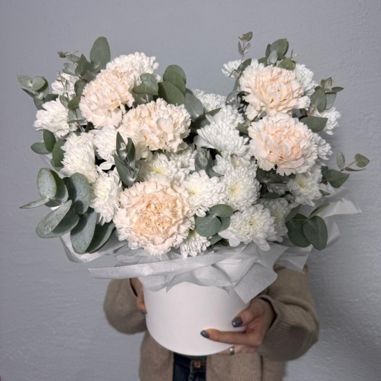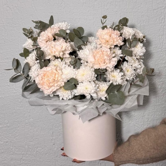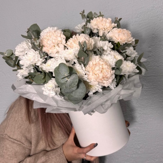 Коробка из кустовых хризантем и диантуса в Балабаново